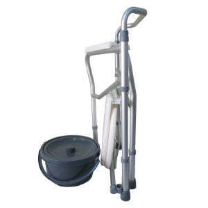 เก้าอี้นั่งถ่ายอลูมิเนียม แบบพับได้ ขนาดพกพา ไม่มีล้อ สำหรับผู้สูงอายุ และผู้พิการที่มีปัญหาในการเข้าห้องน้ำ สามารถวางไว้ข้างเตียงได้