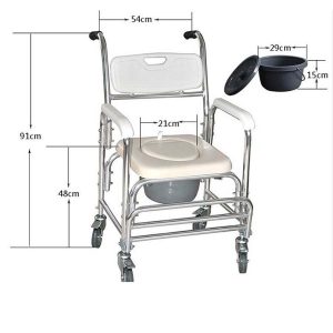 - ขนาดของรถเข็นนั่งถ่าย กว้าง x ยาว x สูง = 56 x 48 x 96 ซม.